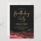Invitation à la fête d'anniversaire d'agate noir, rouge et or. Design élégant et moderne avec aquarelle agate marbre arrière - plan, fausse parties scintillant or et typographie script de police. Carte invitation branchée parfaite pour une célébration anniversaire féminine élégante. Invitations Zazzle imprimées ou téléchargement instantané modèle imprimable numérique.
