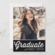 Fêtons le diplômé ! Invités Invitations à votre événement avec cette invitation personnalisable de graduation photo. Il présente une typographie rétro et audacieuse. Personnalisez-le en ajoutant vos détails. Cette invitation de graduation photo en noir et blanc est disponible dans d'autres cartons et couleurs.