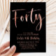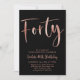 Forty Black et Faux Rose Gold Birthday Invitation avec une police de script moderne. Une invitation simple et amusante pour votre fête d'anniversaire de 40 ans.