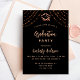 Un arrière - plan noir décoré d'étoiles dorées roses et d'un casquette. Personnalisez et ajoutez un nom et des détails du parti. Le texte Graduation et le nom sont écrits avec un script de style à la main moderne.