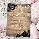 Invitation Black Roses,String Lights,Wood Texture Quinceañera
