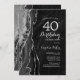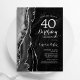 Gate noir et argent 40e anniversaire invitation de fête. Design élégant et moderne avec aquarelle agate marbre arrière - plan, faux parties scintillant argent et typographie script. Carte invitation branchée parfaite pour une célébration anniversaire féminine élégante. Invitations Zazzle imprimées ou téléchargement instantané modèle imprimable numérique.