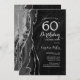 Gate noir et argent 60e anniversaire invitation de fête. Design élégant et moderne avec aquarelle agate marbre arrière - plan, faux parties scintillant argent et typographie script. Carte invitation branchée parfaite pour une célébration anniversaire féminine élégante. Invitations Zazzle imprimées ou téléchargement instantané modèle imprimable numérique.