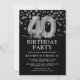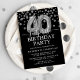 Invitation Black & Silver moderne 40e fête d'anniversaire sur