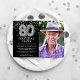 Invitation Black & Silver moderne 80e photo d'anniversaire su