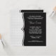 Élégant carré à rayures noir et blanc vérifie modèle d'invitation d'entreprise classe et professionnelle. Customisez cet événement et le modèle de soirée avec vos informations, le style de police et la couleur de police. Ce modèle élégant et élégant d'entreprise travaille comme une invitation à un événement de cravate noire, collecte de fonds, événement caritatif, grande ouverture, exposition d'art, symphonie, concert, bal, danse, réception, cocktail, fête de vacances ou toute autre occasion spéciale.