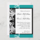 Invitation Black White Turquoise Heart Mariage damassé Invita