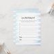 Profitez de jouer à ce jeu de baby shower Guess That Baby Food sur douce, bleu et blanc de l'aquarelle arrière - plan. Mignons lapin blanc, lapin lapin sur le dos avec des modèles créés pour vous.