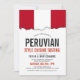 Une carte blanche propre orientée d'invitation de drapeau péruvien pour votre prochain événement orienté péruvien. Un grand article à employer pour un événement de cuisine de nourriture, ou barbecue spécial de sélection de nourriture.