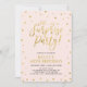 Célébrez votre journée spéciale avec cet élégant modèle d'invitation à la fête d'anniversaire moderne. Ce design présente des confettis texturés en or chic et de la calligraphie avec un arrière - plan rose.
