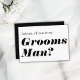 Proposition moderne en mariage noir et blanc avec les mots "Serez-vous mon groomsman ?" et personnalisée avec son nom.