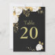élégant personnalisable carte numéro de table blanc fleurs avec quelques feuilles d'or noir carte numéro de table