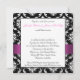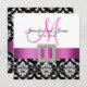 Invitations noires et blanches élégantes de mariage damassé avec une copie de photo d'un ruban rose de satin, broche carrée avec la copie de photo des diamants blancs. Elke Clarke©2012. Graphiques autorisés. Le ruban et les bijoux ne sont pas vrais, quoique les graphiques les fassent regarder tout à fait réalistes. Ces invitations magnifiques de mariage sont personnalisées avec vos noms de jeunes mariés et date de mariage dans la police élégante noire de manuscrit et une initiale rose de monogramme sur l'avant de la carte. Sur le dos, sur un arrière - plan de damassé noire et blanche, le secteur blanc contient le texte de faire-part de mariage. Le texte est complètement personnalisable. Vous ne devez pas employer les mots d'échantillon. Montré ici avec les mots ce qui vous permet d'ajouter le nom de chaque invité individuel à la main. Il y a également une option pour ajouter votre information de RSVP directement sur cette carte ou vous pouvez supprimer et employer une carte distincte. Ayez besoin de l'aide ou la voudriez qu'une couleur spécifique de ruban ou de damassé svp entre en contact avec le magasin sans frais supplémentaires.