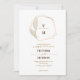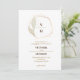 Invitation de mariage minimaliste faussement dorée et blanche, avec vos initiales monogrammées encadrées par un blason élégant et des feuilles botaniques illustrées à la main en haut, les détails de votre événement sont indiqués ci-dessous dans un script moderne et une police classique. Simple et luxueux. Idéal pour un mariage classique moderne, un mariage formel simple, un mariage élégant dans un jardin botanique.