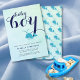 Cette adorable invitation à la douche pour bébé garçon présente une typographie bleu marine avec les mots "Baby boy" écrit dans une police élégante. Le design comprend également une charmante petite baleine bleue ornée de coeurs, dressée contre un arrière - plan bleu clair. Au fond de l'invitation, un ravissant motif de baleines ajoute une touche de fantaisie à l'ensemble.