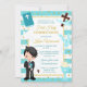 Invitation Bleu bande noir Cheveux garçon première communion