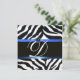 Invitation BLEU BLACÉ BLANC ZEBRA MONOGRAM DE FOUR, Sapphire