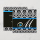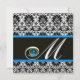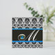 Invitation BLEU BLANC DAMAS MONOGRAMME Saphir