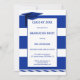Invitation de la fête de graduation avec un design nautique en blanc frais avec des rayures bleu marine et royal.
