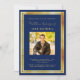 Une invitation d'anniversaire élégante, moderne et simple. Un arrière - plan bleu marine décoré de faux cadres dorés. Personnalisez et ajoutez un nom photo et des détails. Texte doré.