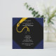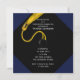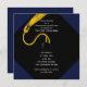 Modèle invitation de graduation unique avec casquette noir et or classique sur un arrière - plan bleu marine.