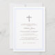 Jolie invitation croisée décorative encadrée de bleu pâle. Personnaliser pour le baptême, la communion ou tout événement religieux spécial.