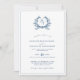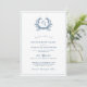 Un élégant, formel, classique crête botanique et faire-part de mariage monogramme en bleu azur. Le verso de la carte contient un code QR pour plus de détails sur votre site.