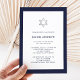 Ces invitations simples et modernes à Bar Mitzvah ou Bat mitzvah ont une bordure bleu foncé, avec un texte assorti élégant et une étoile argentée de David.