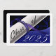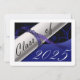 Carte Bleue et blanche de la fête de graduation avec un diplôme et l'année de graduation sur elle. Le dos est un arrière - plan noir avec des lettres blanches pour les invitations à la fête de remise des diplômes.