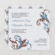 faire-part de mariage sobre et élégante décorée de tourbillons de fleurs bleus et chocolatés et damassé en arrière. faire-part mariage élégant et entièrement personnalisable.