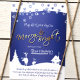 Invitation Bleu, flocons de neige et rennes blancs, logo de l