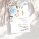 Invitation Bleu floral verdure or croix garçon luxe baptême
