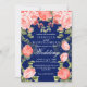 Invitation Bleu foncé botanique et fleur de corail - Mariage