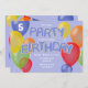 Cette invitation amusante et colorée à la fête d'anniversaire pour les garçons présente des cookies découpés réalistes, disposés de façon fantaisiste sur l'avant et l'arrière de la carte d'invitation entourés de ballons multicolores et de drapeaux de bunting - les cookies épellent "fête" et "anniversaire" sur le devant et "C'est mon anniversaire" sur le dos - customisez le texte pour votre célébration - par katz_d_zynes