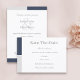 Invitation Bleu marine gris blanc rayures enregistrer la date