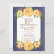 Invitation de mariage personnalisée avec un ton de bijou iridescent bleu marine encadré de fleurs jaunes pour l'anniversaire de mariage