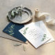 Invitation bleu marine mariage Eucalyptus simple moderne
