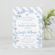 Célébrez l'excitation d'accueillir un bébé garçon avec cette délicieuse invitation ornée de fines fleurs bleues, de minuscules papillons et d'accents botaniques, capturant l'anticipation de son arrivée.