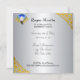 Plumes bleues Argent Cadre Or Invitation pour un anniversaire, une réunion ou une réunion