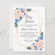 Ces invitations à la douche pour bébé présentent un design floral aquarelle avec des fleurs roses bleues et rousses, un feuillage d'eucalyptus et un cadre géométrique en faux or. Personnalisez le libellé de l'invitation avec votre propre texte. Objets correspondants également disponibles. Veuillez visiter notre magasin.