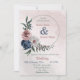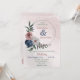 Invitation bleu rose & blanc fleuri vert mariage