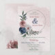 Belle faire-part de mariage botanique avec fleurs rose, blanche et bleu marine avec feuilles verts sur un cercle vert formant une jolie couronne romantique. Il convient aussi bien aux invitations mariages qu'aux fiançailles. POUR PLUS DE PRODUITS CORRESPONDANTS cliquez sur la collection ci-dessus ou contactez-moi.
