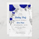 Invitation bleu royal et fleurs blanches argent