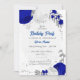 Fleurs royales romantiques bleues & blanches avec des invitations feuilles d'anniversaire botanique argent. Les détails de la parties scintillant sont simulés.