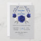 Invitation bleu royal fleurs blanches argent gris mariage