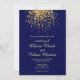 Cette élégante faire-part de mariage moderne arbore une touche de confettis doré sur un riche arrière - plan bleu royal.
