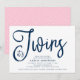 Invitation Bleu Script et rose C'est Twins Baby shower