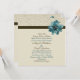 Fleur bleue brun chocolat et turquoise de damassé crème - faire-part de mariage