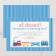 Tous à bord ! Ayez une fête d'anniversaire orientée de train d'amusement avec cette invitation lumineuse et gaie. Machinez les rayures décrites comme motif bas. Coordonnées avec la collection entière de fête d'anniversaire de train.