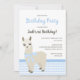 Invitation bleue de fête d'anniversaire d'alpaga/lama